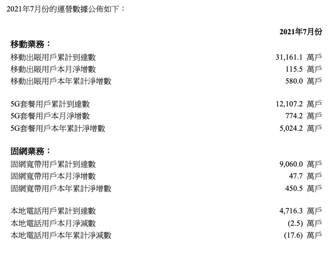 在移动业务方面,中国联通移动出账用户 7 月净增 115.5 万户,累计达 31161.1 万户。其中 5G 套餐用户 7 月净增 774.2 万户,累计达到 12107.2 万户。