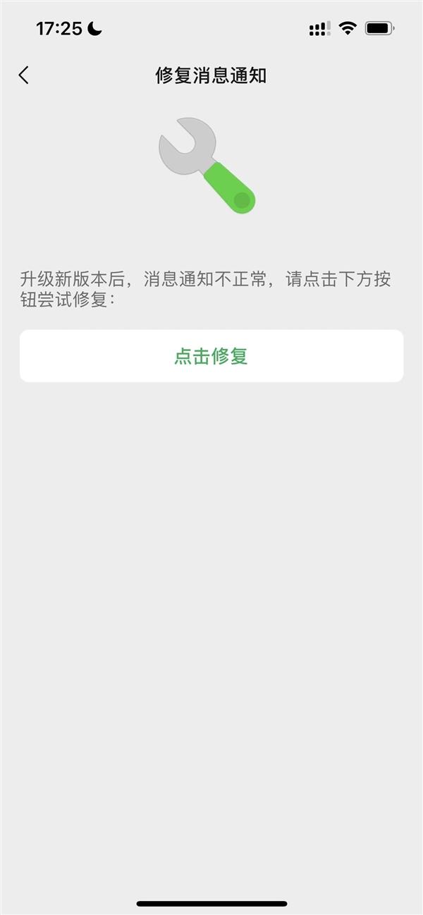 据悉,该功能“藏”的比较深,需依次点击“我”-“设置”-“帮助与反馈-点击右上角”扳手”图标,即可看到“修复消息通知”的选项。