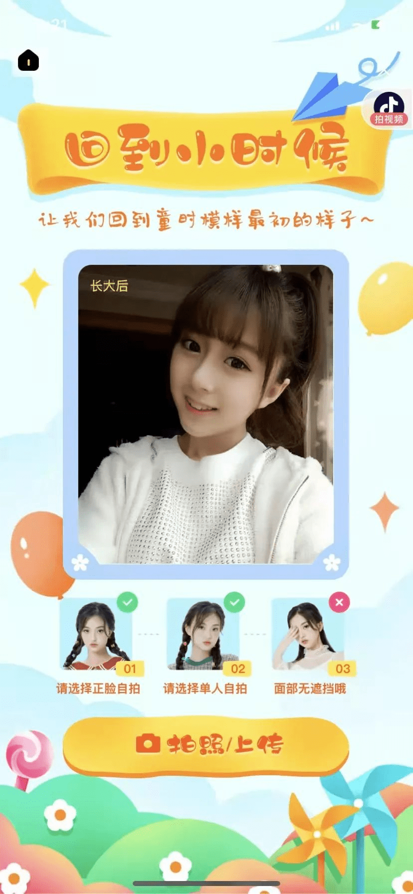 抖推猫“三岁照片”功能刚好可以解决问题,而且功能的聚焦,避免用户注意力过于分散。和照片生成的app相比,操作更加便捷,可以更快达成目的,满足用户的需求。