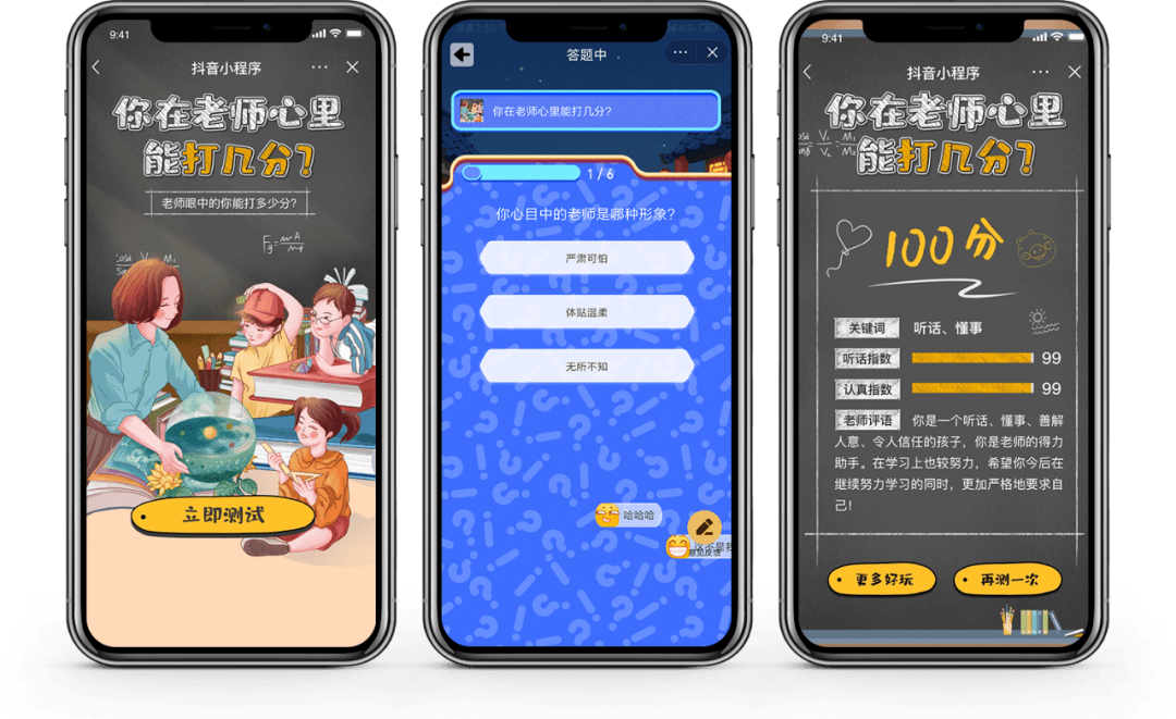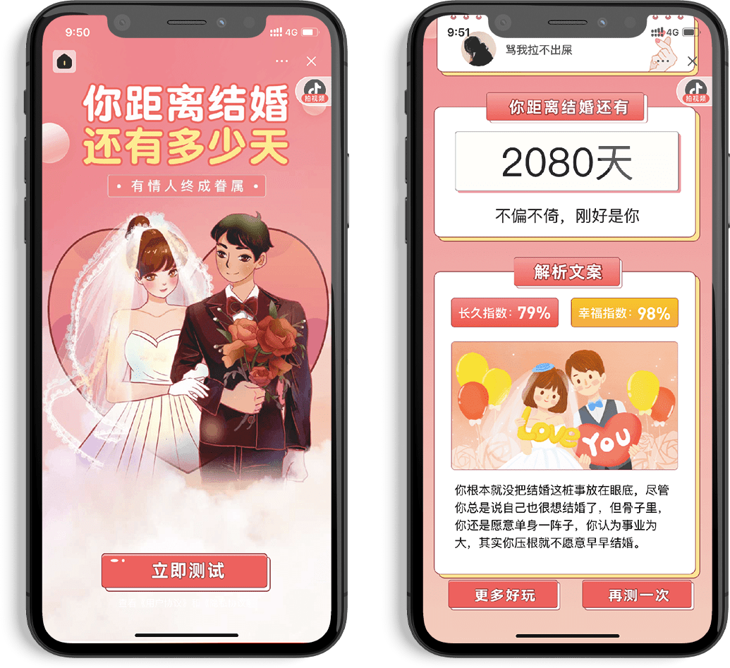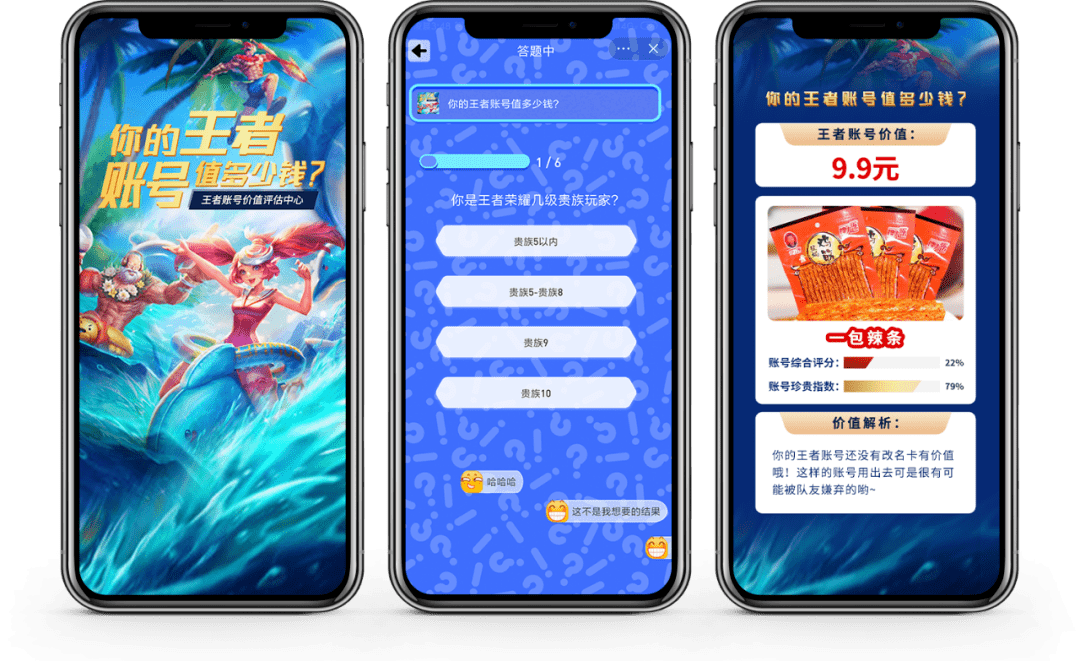 参考玩法:根据微信对话的形式,展示测试结果,吸引用户测试。