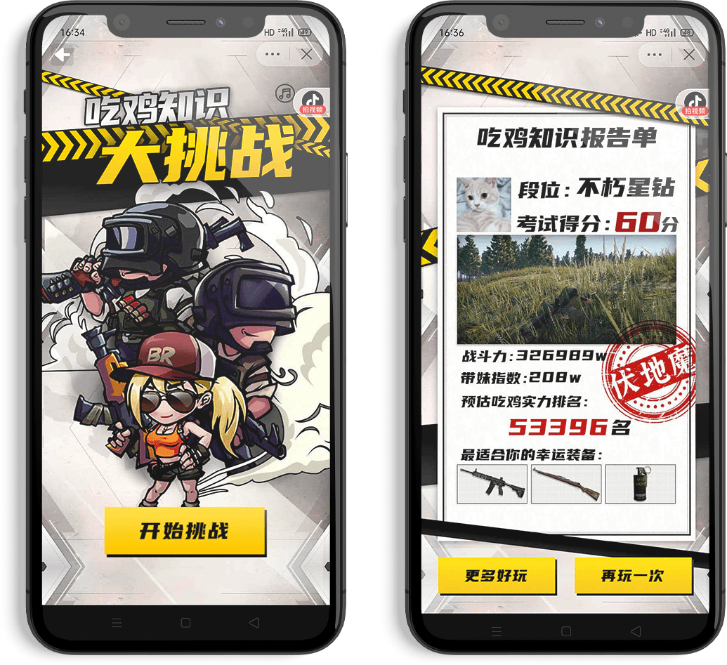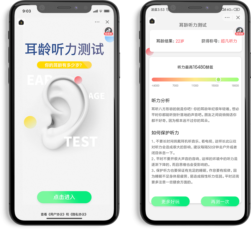 参考玩法:利用微信对话的形式来突出内容,然后利用测试结果来引导用户测试。