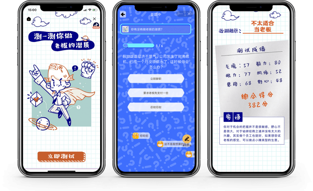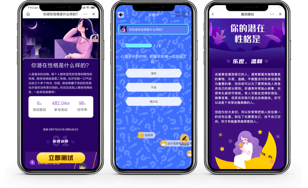 参考玩法:通过用户日常的行为方式,引导用户关注测试主题。进行测试。