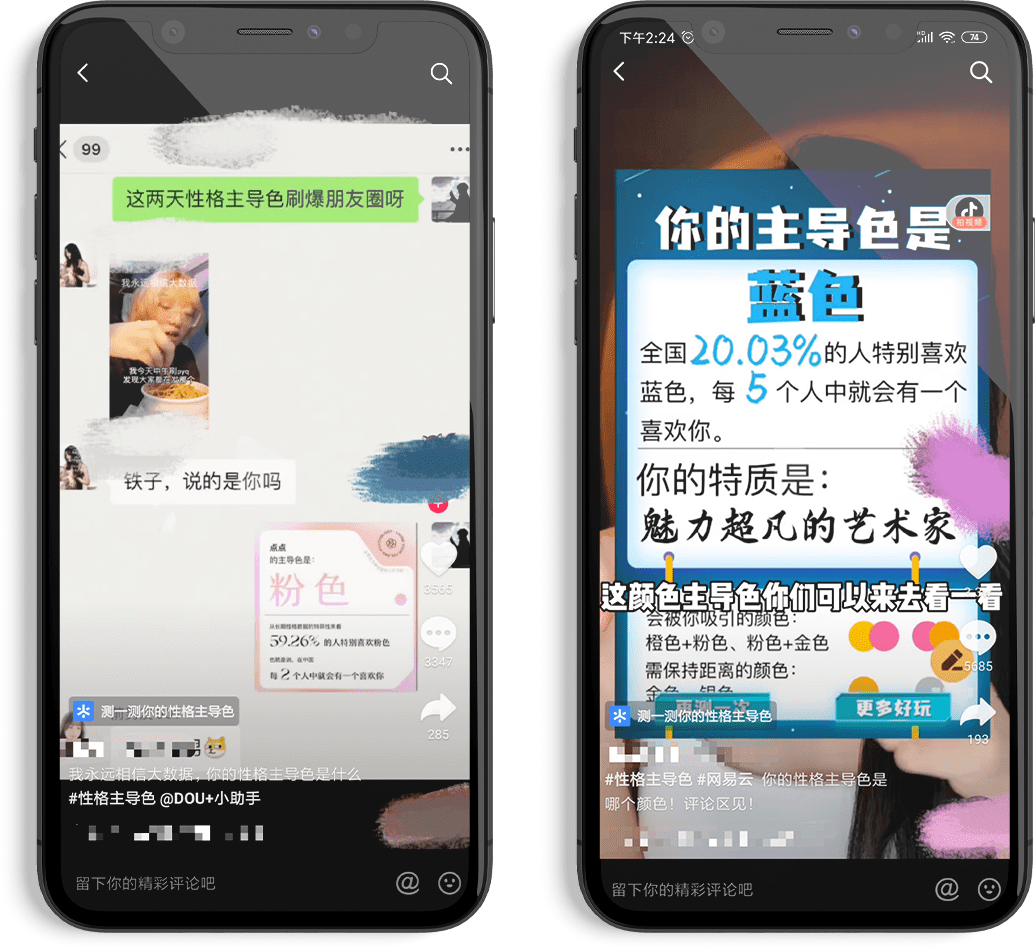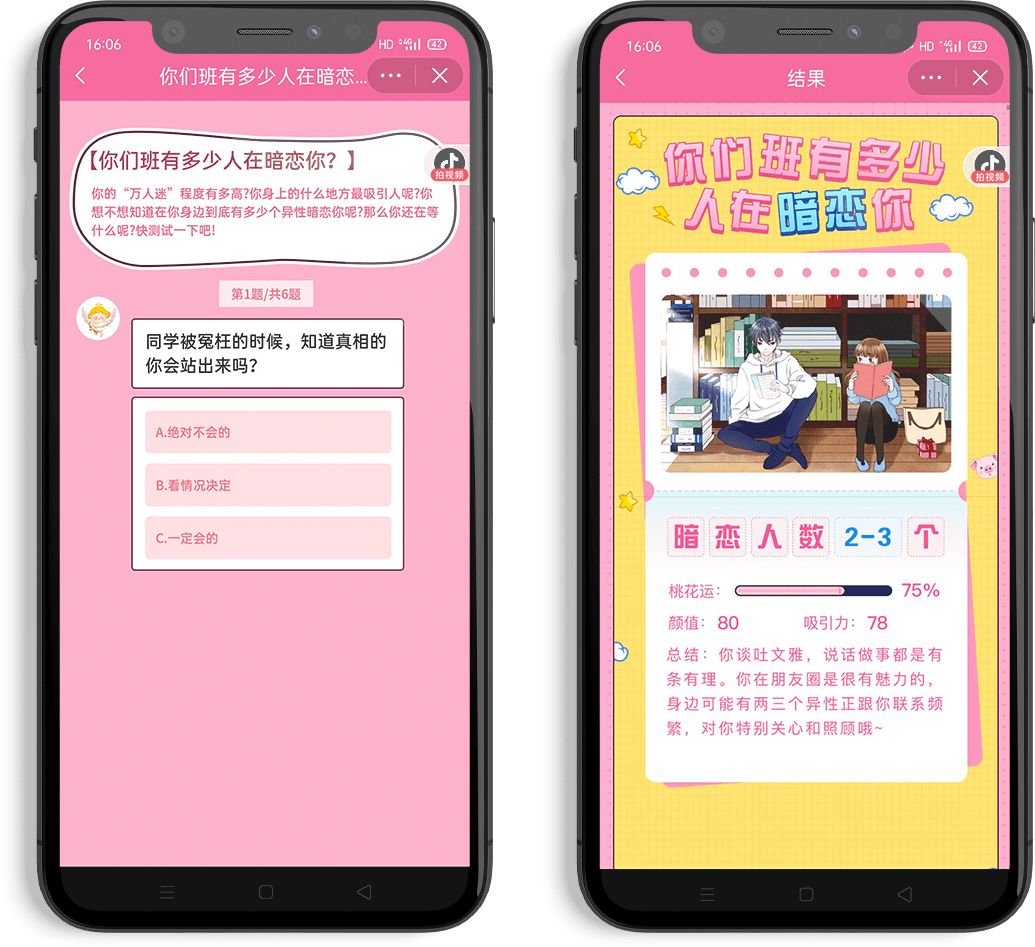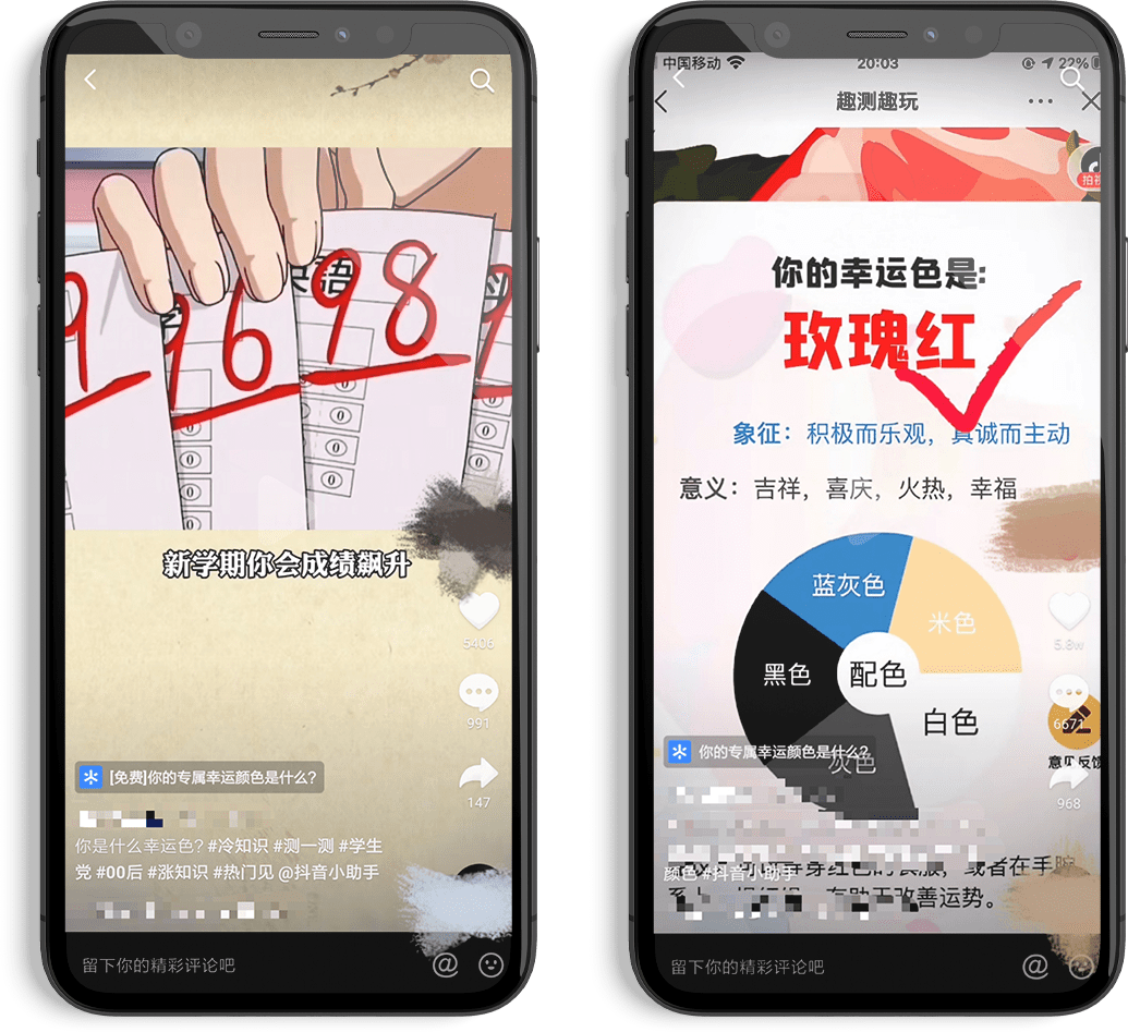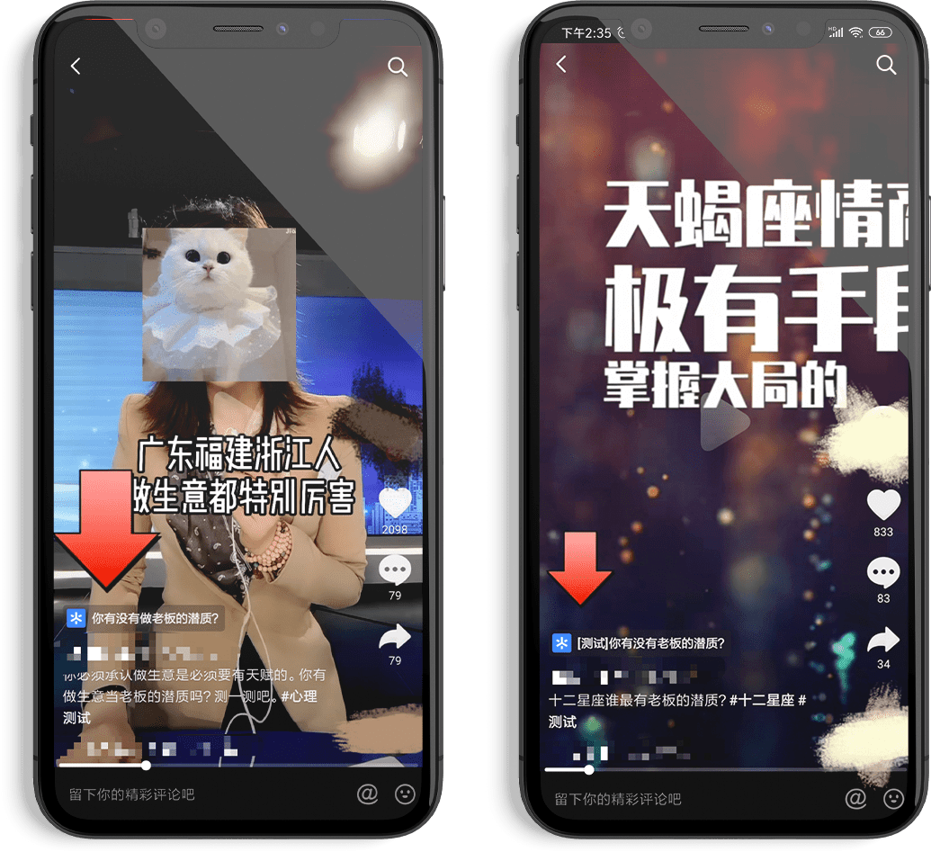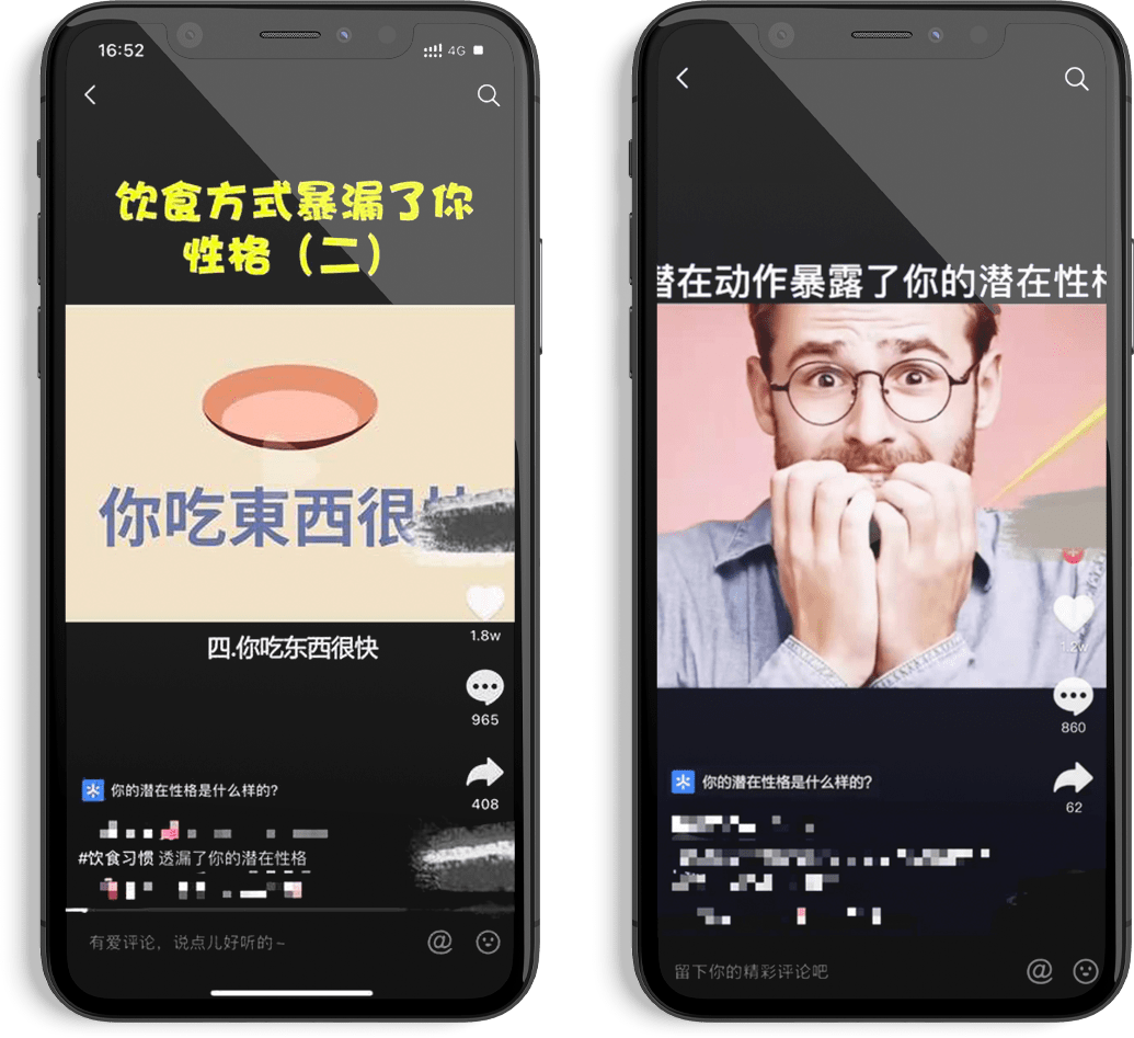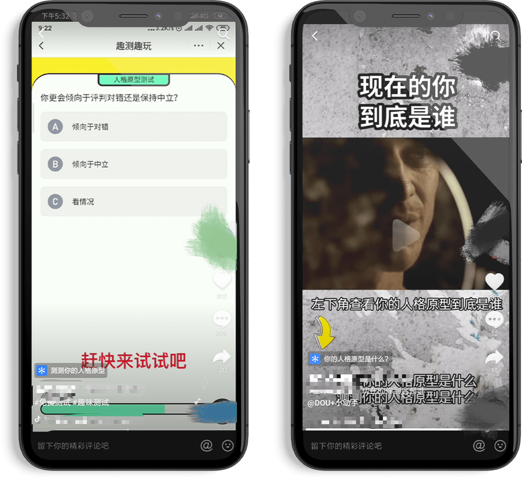 参考玩法:通过一个心理故事配合口播,引导用户测试得到答案,文案的引导是关键。