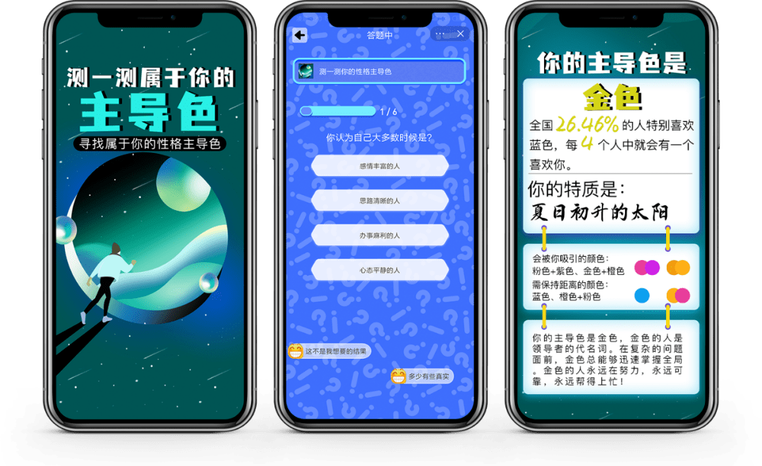 参考玩法:通过生活中不同场景的颜色,引导用户关注主题,进行测试。