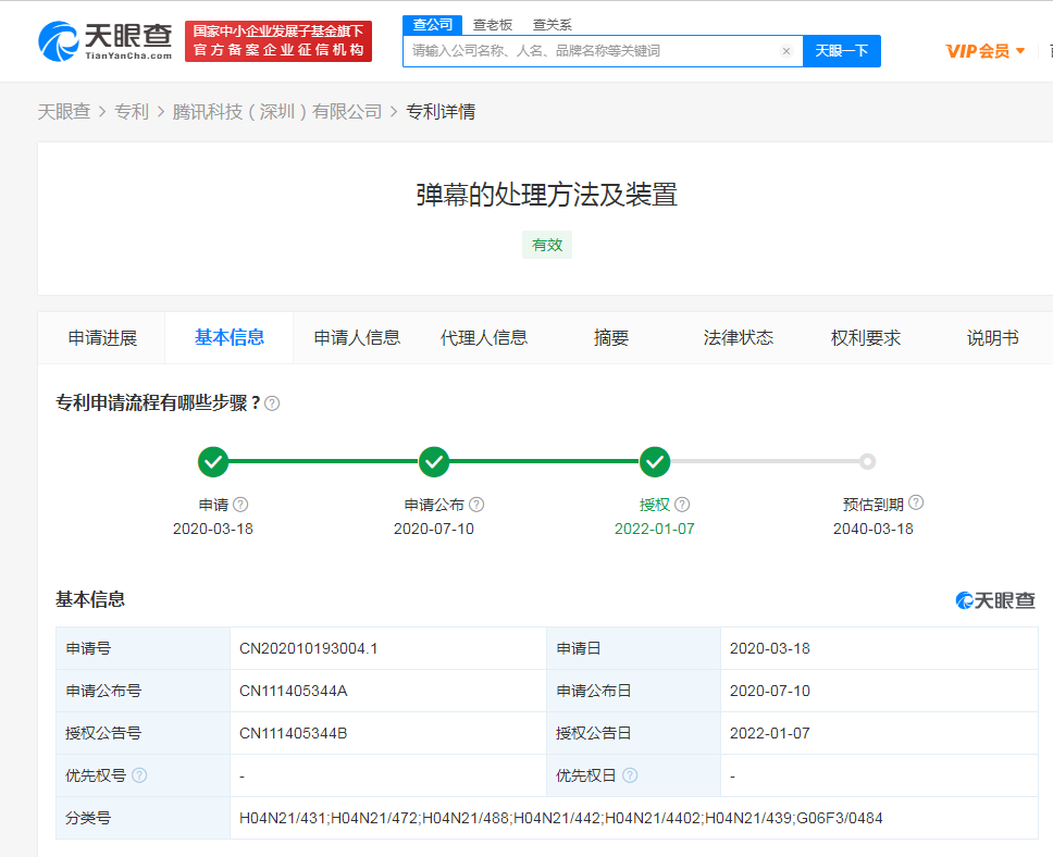 近日,腾讯科技(深圳)有限公司获得“弹幕的处理方法及装置”专利授权。