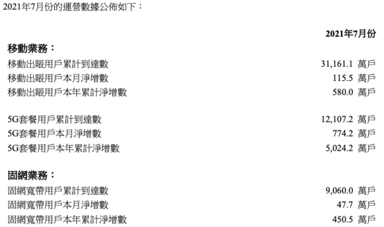中国联通日前正式公布 7 月份运营数据。数据显示,中国联通 5G 套餐用户 7 月净增 774.2 万户,累计达到 1.21 亿户,固网宽带用户本月净增 47.7 万户,累计到达数 9060.0 万户。
