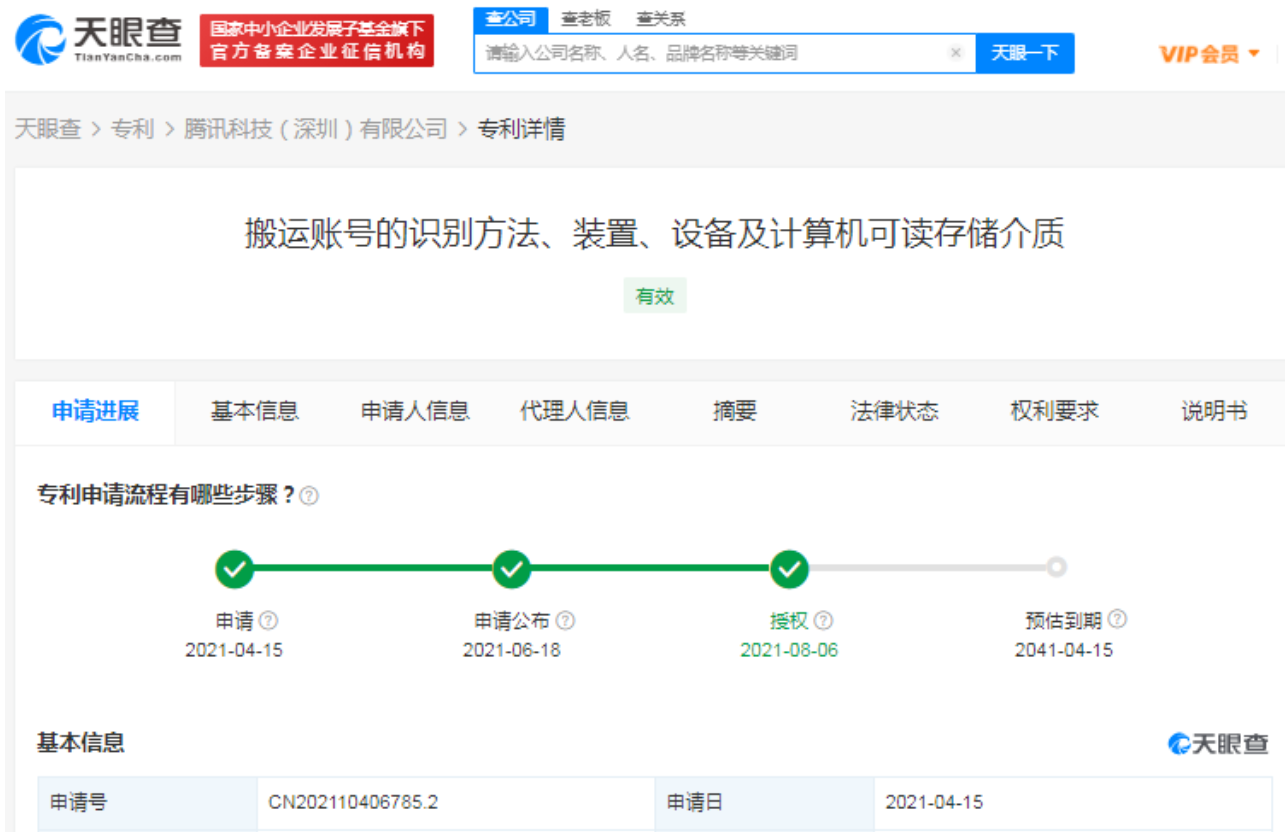腾讯搬运账号识别专利获授权 能提高检测效率